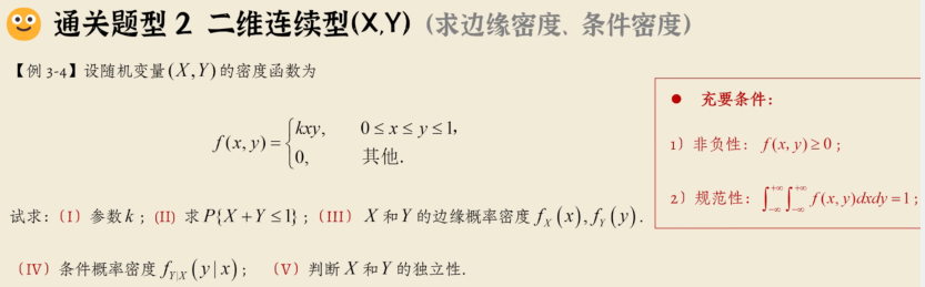 - 二维连续随机变量: 连续型X和Y相互独立,联合密度等于各自一维密度的乘积,范围拼凑